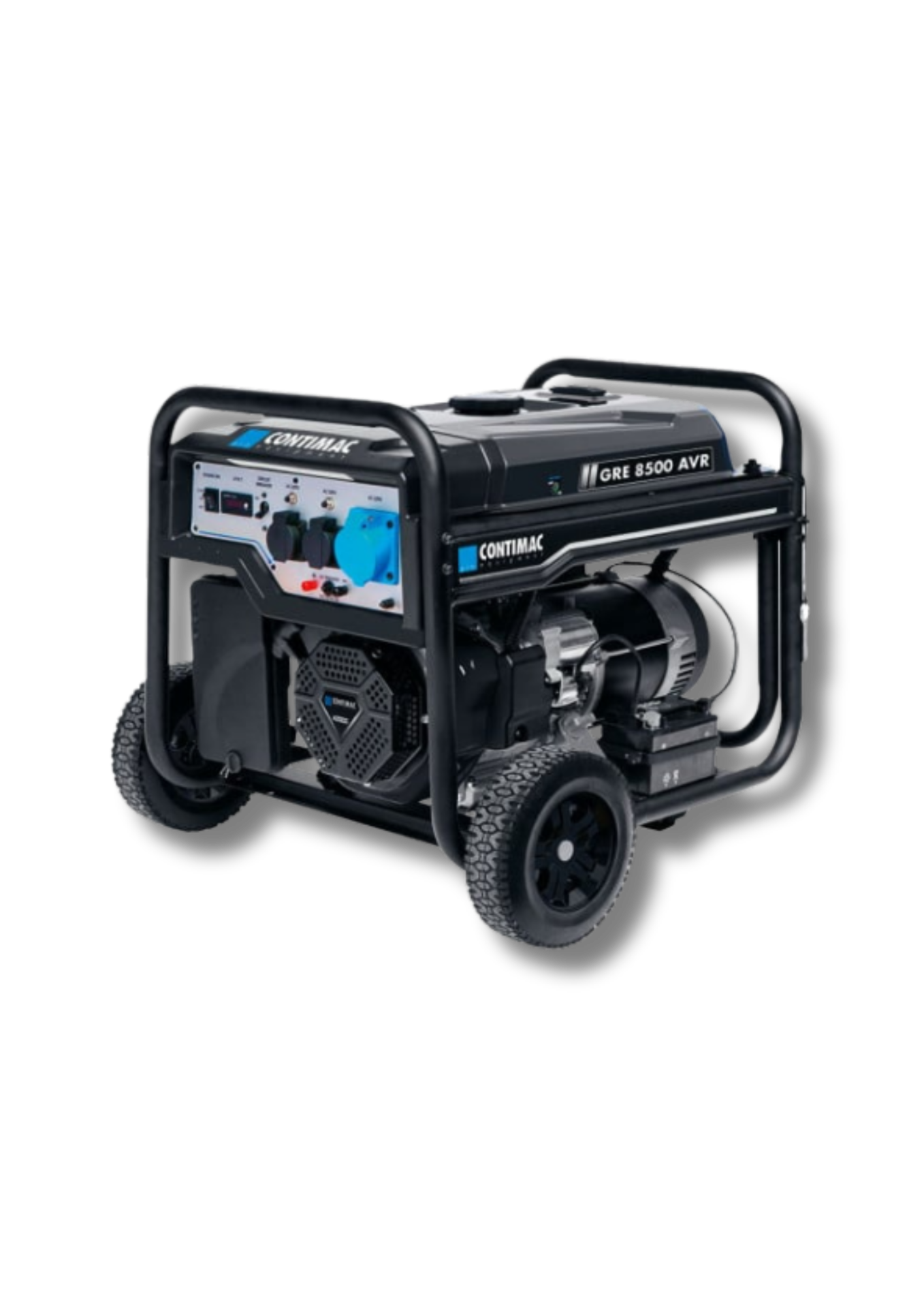 Puissance max:8500 W, Consommation de carburant (50% de charge):2,59 l/h, Temps de fonctionnement en continu (50% de charge) heure:10,5 hr, Réservoir:28 L, Carburant:essence, Poids:99 kg, Equipé de 2 sorties 1-230 V et 1 sortie 12 V DC., Équipé d'un module AVR, Convient pour une utilisation sur les chantiers de construction, Pour un usage professionnel, 2 Prises 16A Shuko